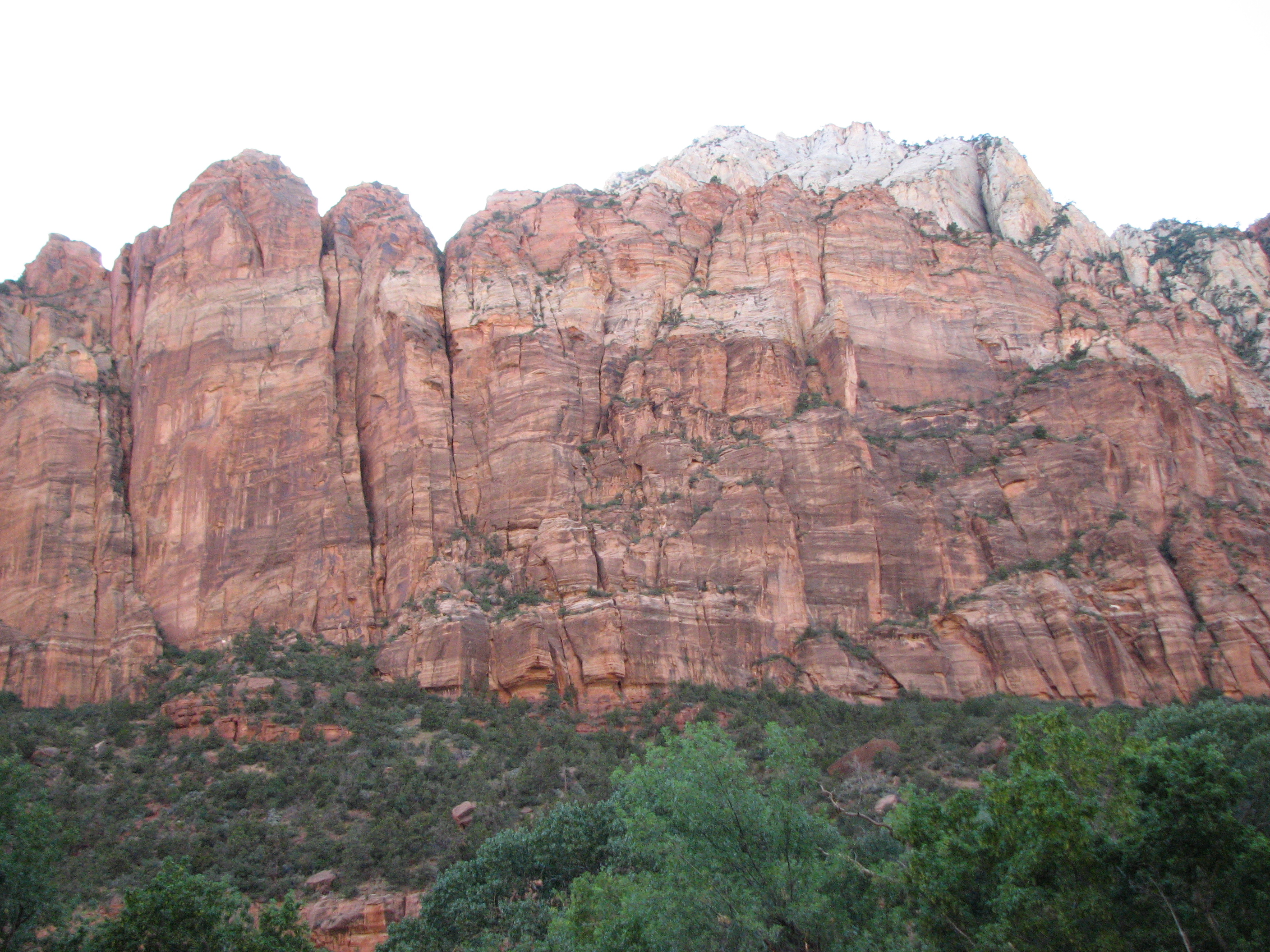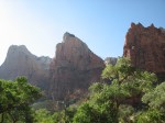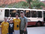 Well-rested and well-fed, we headed into Zion National Park. We recalled having heard that you couldn’t drive around the Park, and this is essentially true. The Park is large, but largely inaccessible by vehicle of any kind. The Zion Canyon area runs from the south entrance to the Park directly north. This area is accessible by vehicle. In 2000, the Park began running free shuttle buses up and down the Zion Canyon area and began to prohibit cars from driving the route. This practice has reduced traffic, of course, and the Park hopes that this has been better for the Park’s overall ecological health. The shuttle buses run every 7-10 minutes. The full round-trip takes about 80 minutes, but you are welcome to get on and off whenever you like. We were pleased to hear that the last shuttle bus left the end of the line at 10:30 pm. We figured that should accommodate our late lifestyle. We commented that perhaps we should write a book: The National Parks between Noon & Ten: A How-To Guide for Late-Night Families.