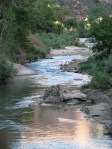 Familiar with Springdale now, and recognizing that we might not get back to the Ranch before the dining room closed for dinner, we headed back to a restaurant we had noticed that only served breakfast and dinner: the Spotted Dog Cafe. The Cafe was still hopping at 9:30 pm and we enjoyed a quiet meal with amazing desserts: home-made chocolate mousse and panna cotta with fresh strawberries and a balsamic dressing. Oh my! Do stop in at the Spotted Dog and Cafe Soleil if you are ever in Springdale. Both are excellent restaurants.