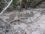 Today, the banks of the river are sandy, even seeming like a beach in some places. Cacti grow in the sandy areas, while pine forests grow further up. We were quite surprised to see two rattlesnakes very close to the trails we were hiking, one down near the river. We got a few good photos and retrieved the children’s shoes from nearby one rattlesnake while they waded in the river.