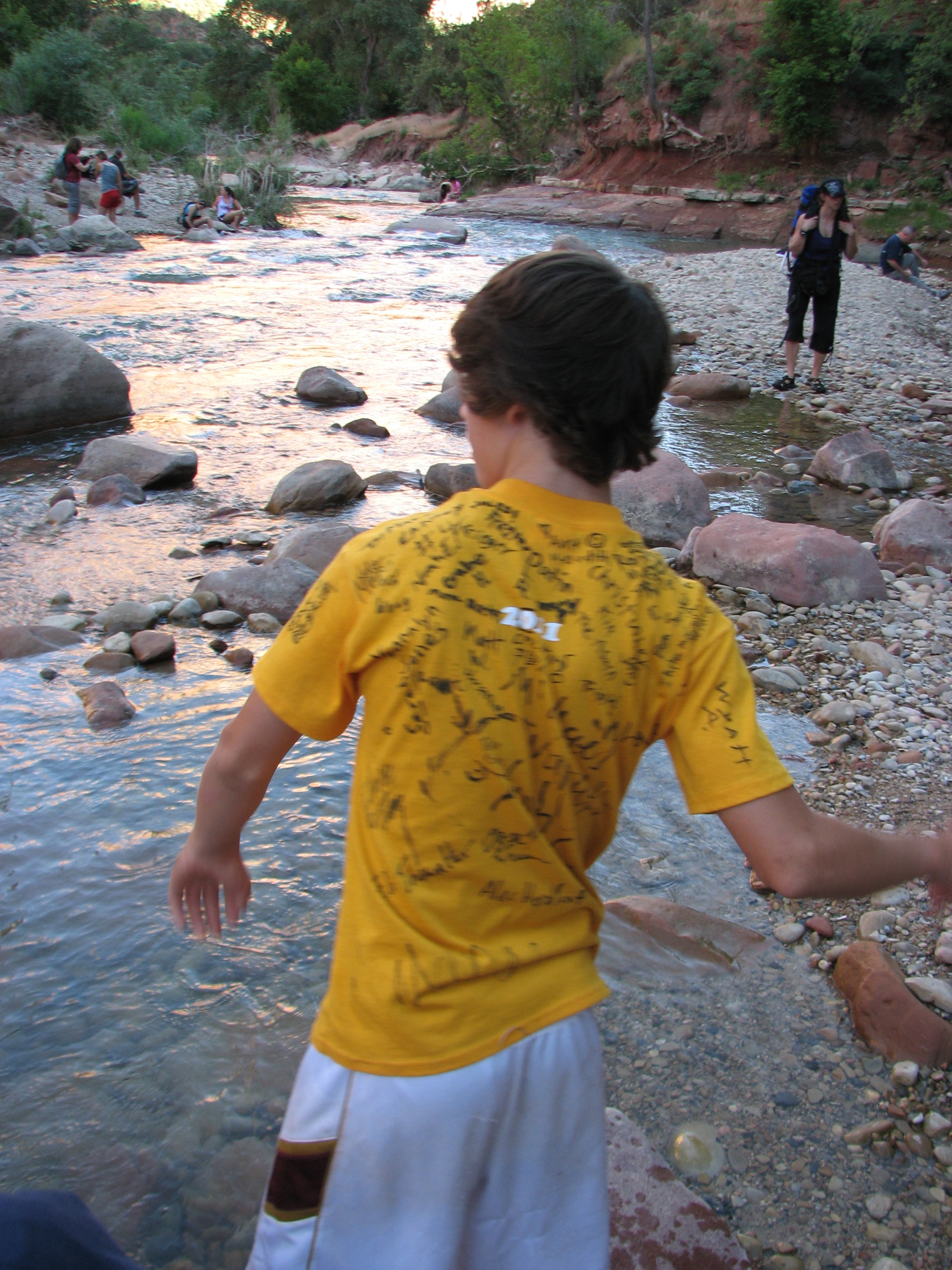 We figured out where to get the shuttle bus and hopped on as quickly as we could. We ended up taking the bus all the way to the end and then back to the Visitors Center, arriving about 9:00 pm. In those five hours, we got on and off the bus a few times: once or twice just to check out the canyon, once to go to the Museum and watch a 22 minute movie about how the canyon was created, and once to hike a trail up to some waterfalls and pools.