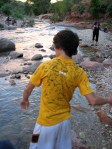 A little river mishap led to a very wet 9 year old, which changed our plans a bit. We did some clothes-drying with the power dryers in the bathroom and then got back on the bus to finish out our bus ride. The sun was setting as we made the return trip to the Visitors Center. We saw a number of mule deer, about 20 turkey, and even a little gray fox as we finished out our day in the Park.
